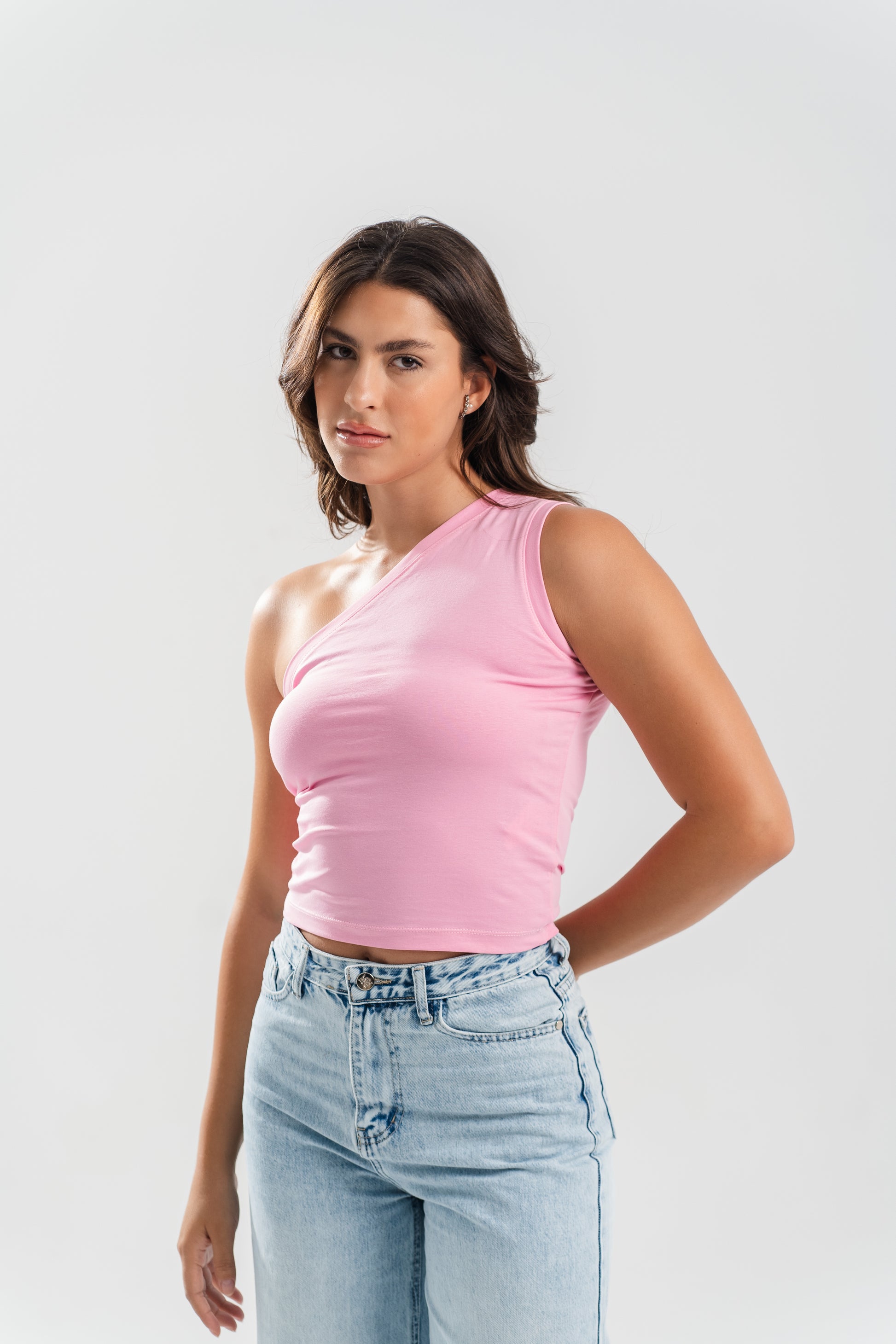 One Shoulder Basic Top - Pink