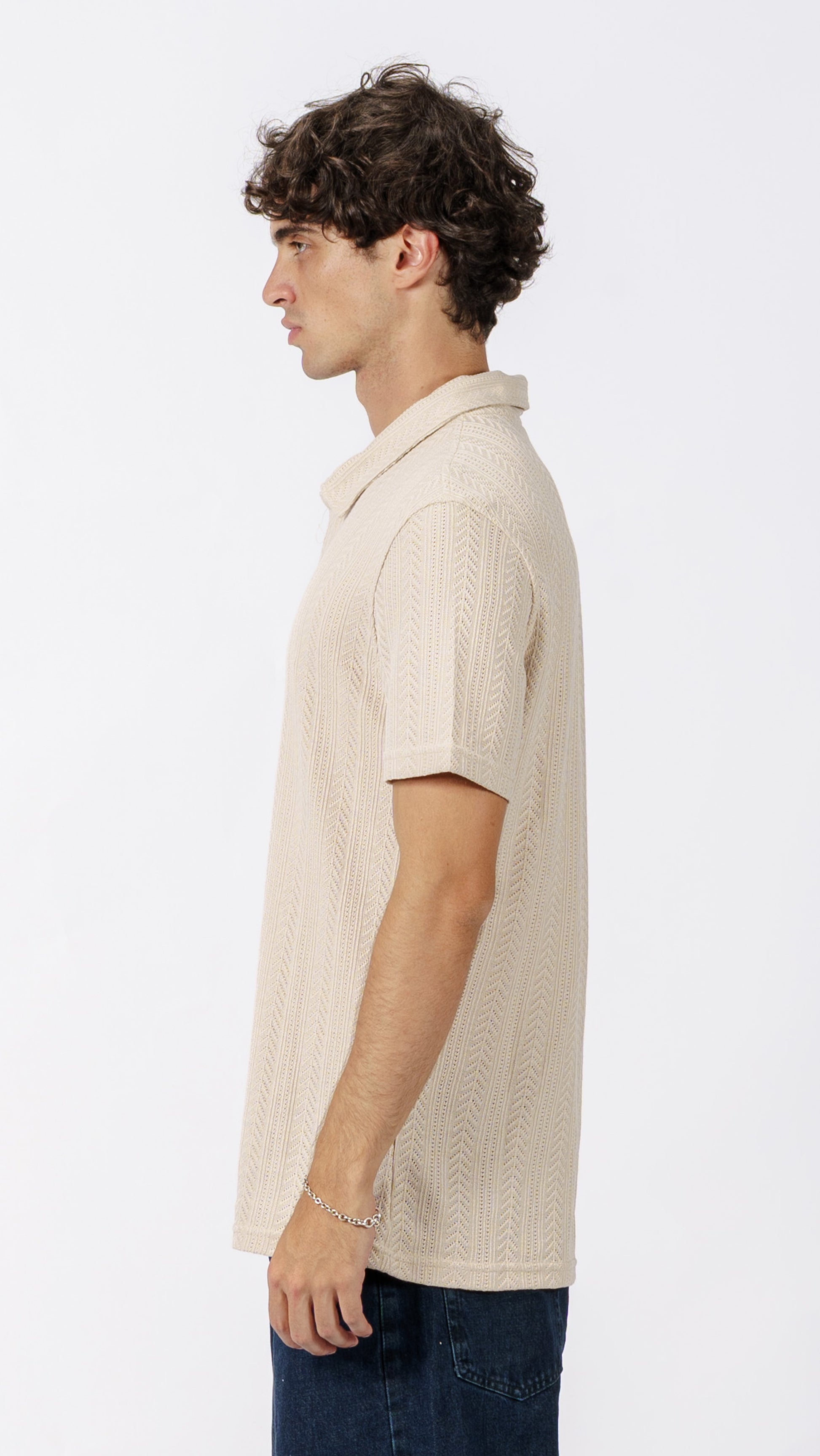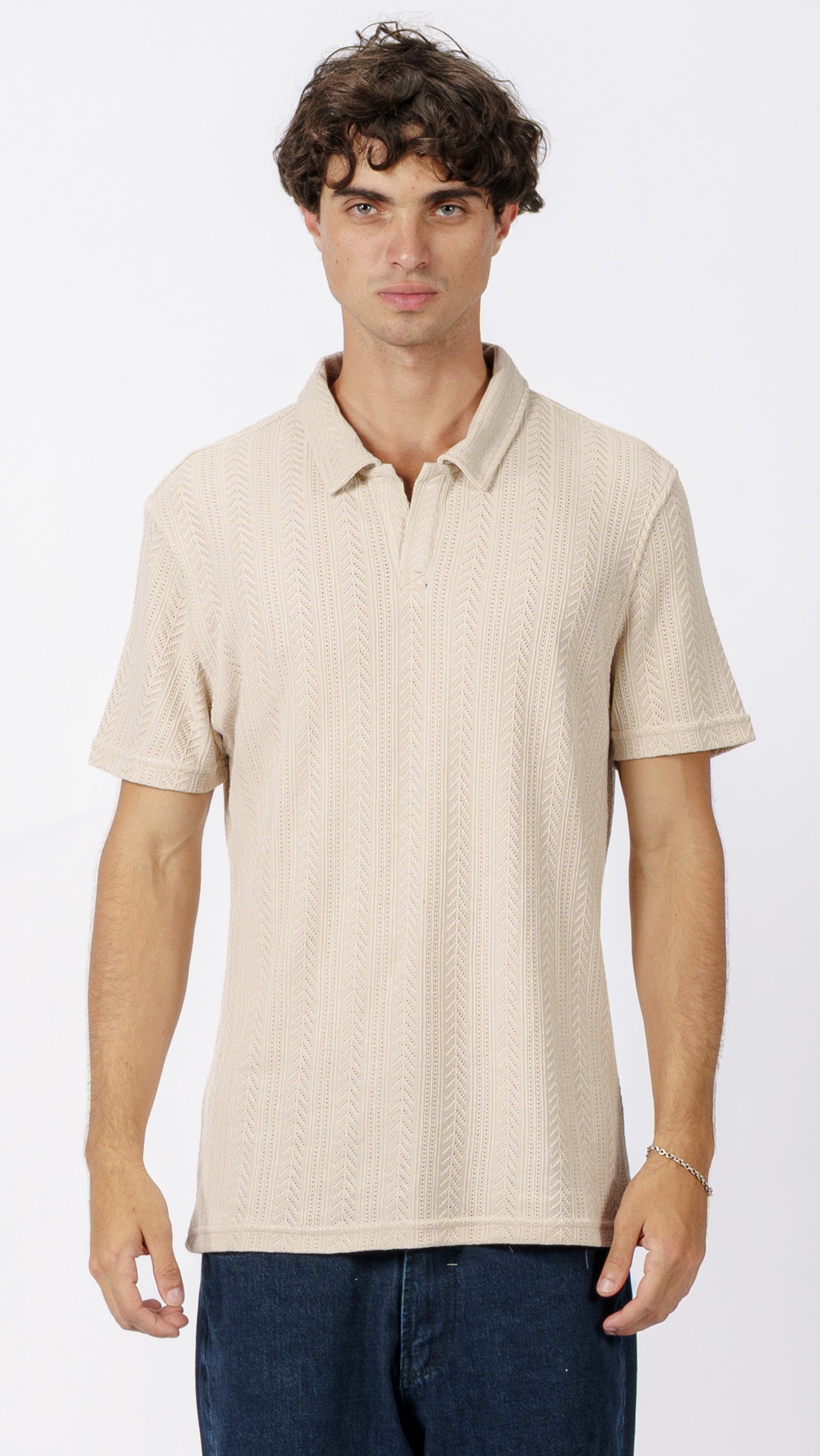 Add a touch of casual elegance to your look with this men's polo shirt, crafted from soft and comfortable fabric. Featuring a fresh, Beige color and a subtle geometric pattern, the shirt adds a distinctive touch without being overpowering. Featuring a classic polo collar and short sleeves, it's an ideal choice for summer looks or casual occasions. It can be easily paired with jeans or shorts for a modern and elegant look.