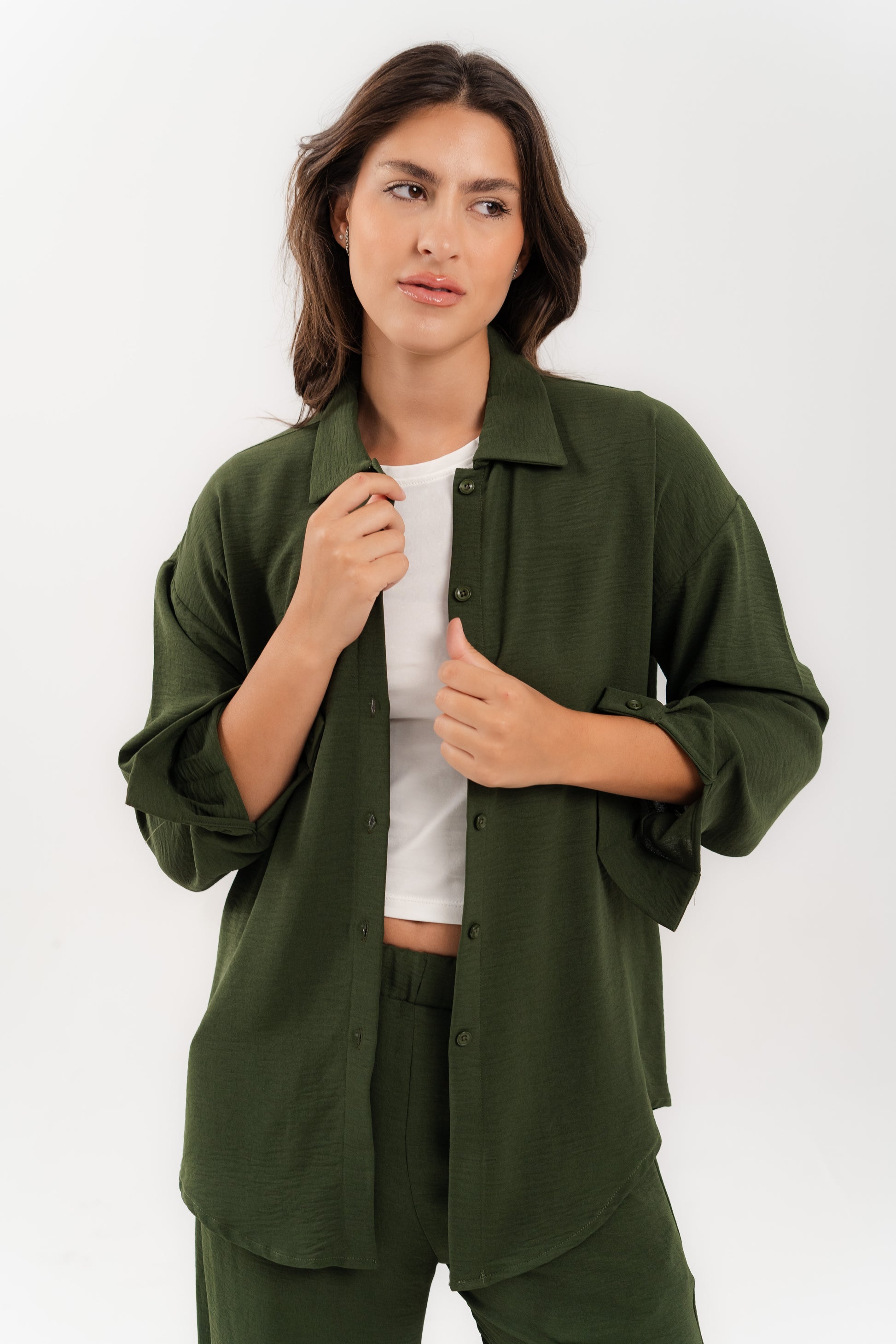 Step into effortless sophistication with the KNTD Luxe Lounge Co-Ord Set in Olive . This elegant two-piece ensemble features a relaxed button-down shirt paired with flowing, wide-leg pants designed for all-day comfort without compromising on style. Crafted from a premium, lightweight fabric, it offers a refined drape and breathable ease — perfect for serene mornings, chic resort lounging, or elevated travel looks.