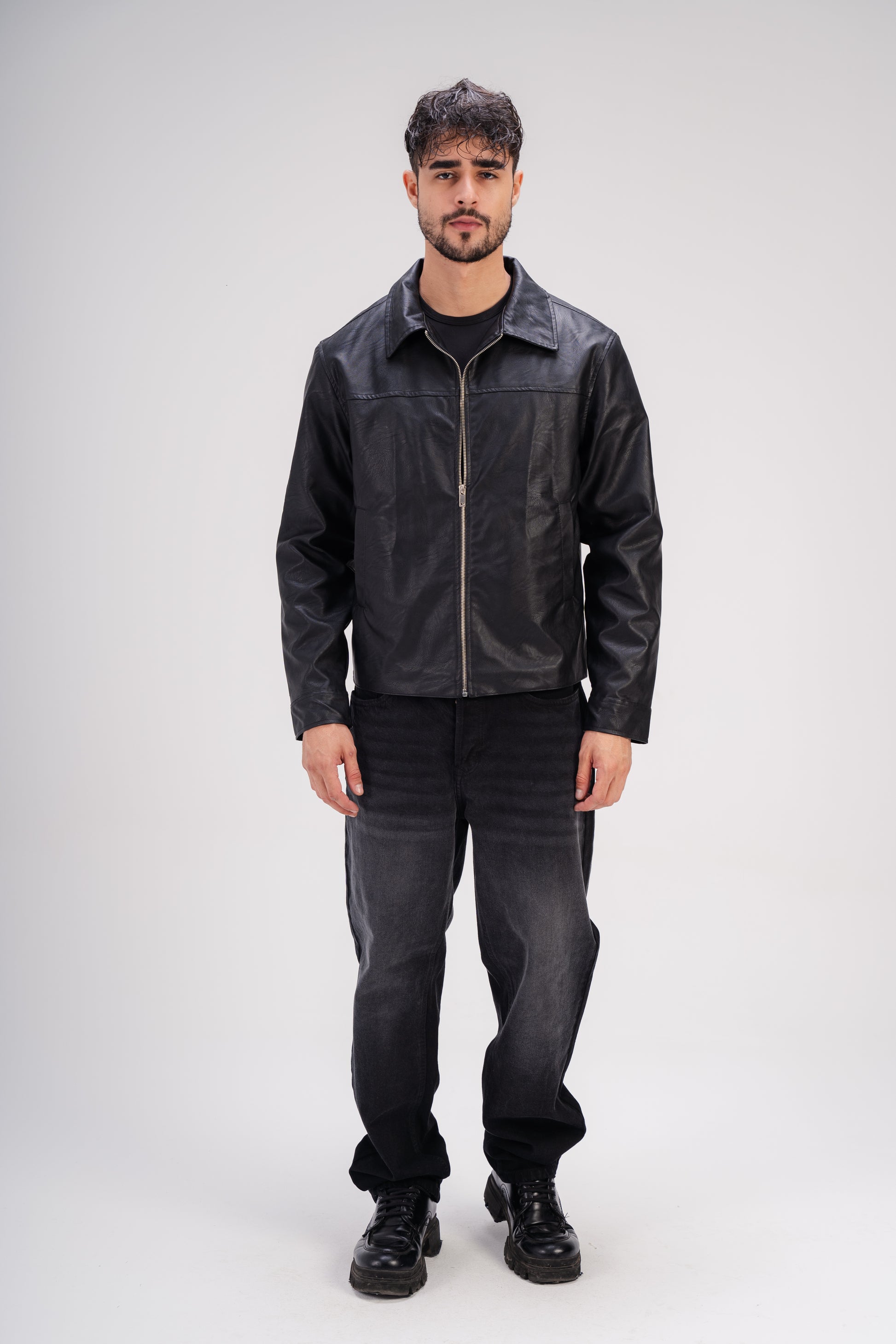 Upgrade your style with this sleek black faux leather jacket for men. Designed with a smooth zip-up front, sharp shirt-style collar, and a clean modern cut, it combines timeless elegance with everyday comfort. Perfect for casual outings or evening wear, this jacket adds a bold, confident edge to any outfit.