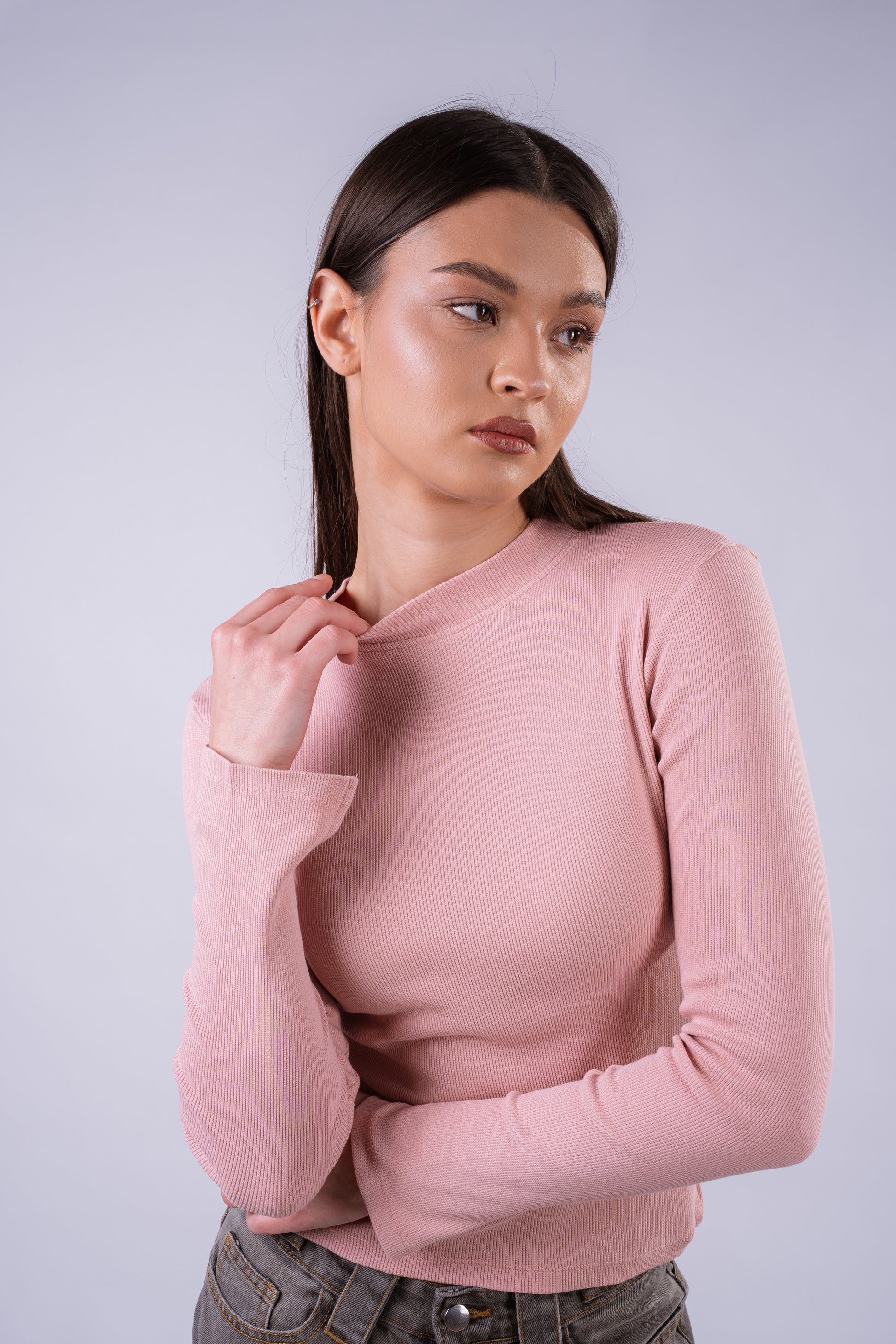 The Sleek Slit-Sleeve Ribbed Top - Pink