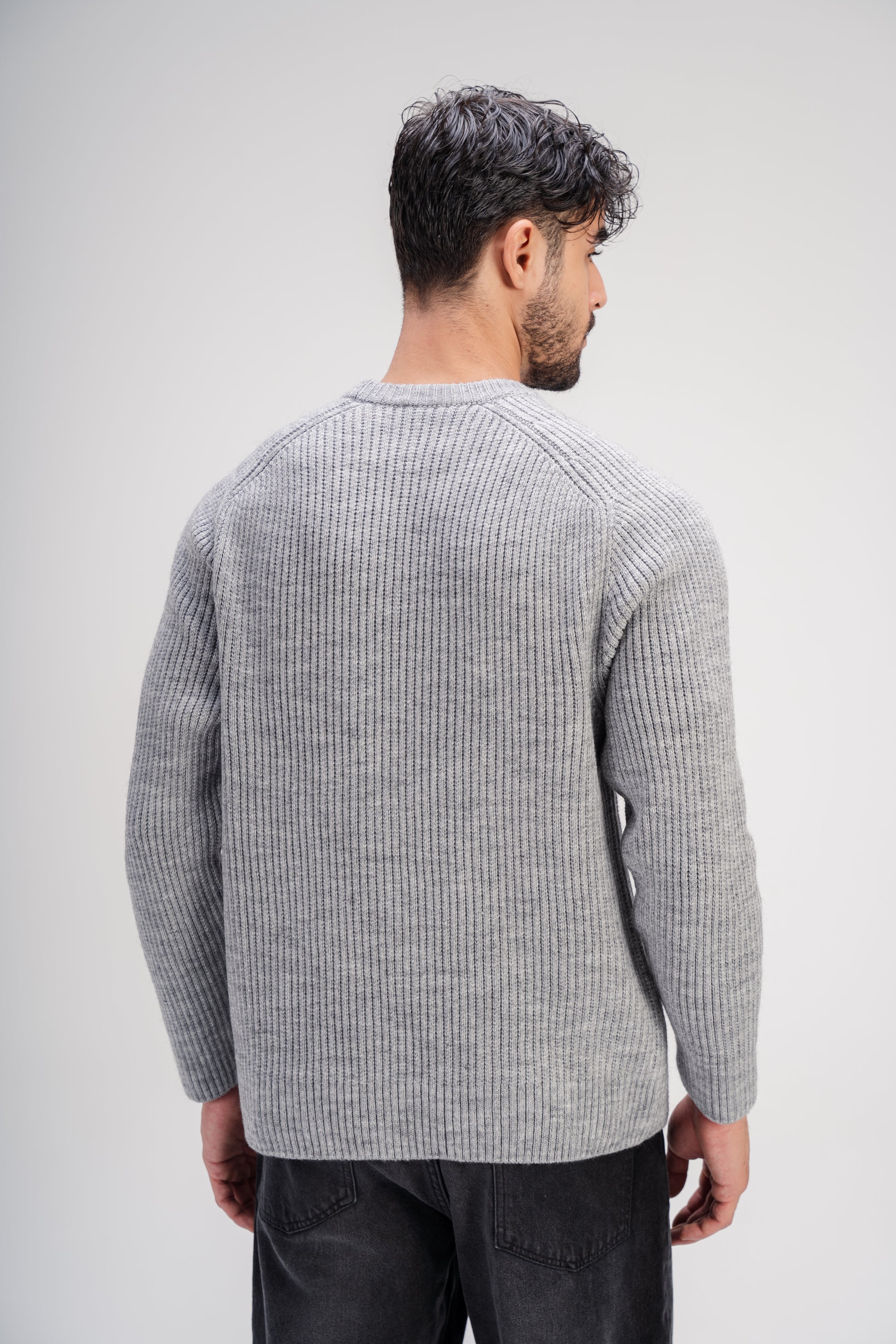 Elevate your everyday style with our grey knitted crew neck sweater. Crafted from soft, breathable yarn, this sweater offers a cozy yet sophisticated feel, perfect for layering or wearing on its own. The classic crew neck design provides a timeless silhouette, while the textured knit adds depth and interest. Ideal for any occasion, this versatile piece seamlessly transitions from casual outings to